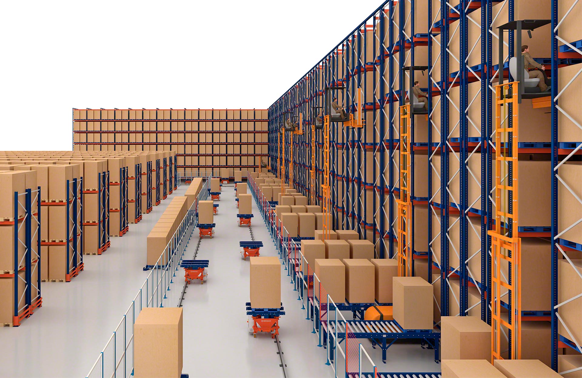 This flexible system covers long distances and allows for the configuration of extremely varied routes. It can be adapted to different functions in various types of warehouses and production centres.