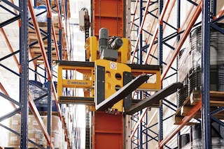 - Space maximization. This is due to their high-density storage capacity, in terms of both square footage and height (up to 150'), and to the fact that they can operate in very narrow aisles (5').