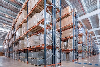 In terms of the choice of storage system, these facilities require a solution with direct access to the merchandise and that’s versatile enough to house multiple SKUs of different shapes, sizes, and weights. In this case, pallet racks are the go-to storage system. They’re sufficiently robust and affordable, and they streamline the goods loading and unloading processes. Plus, they make it possible to install double-deep racks to maximize the storage of same-SKU pallets.