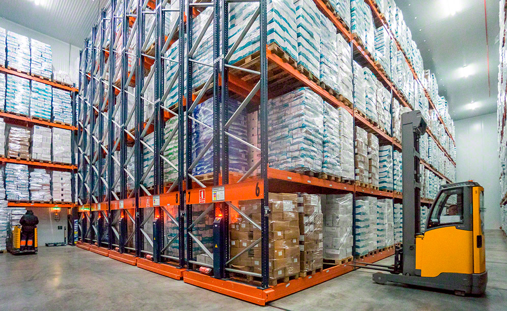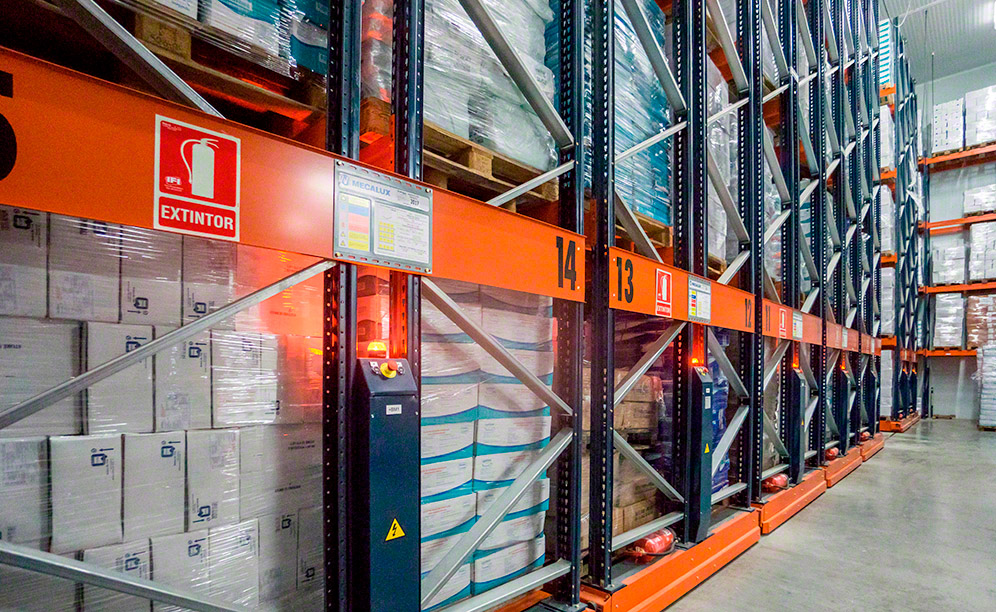 Mecalux racks on mobile bases in the frozen storage installations of Frío Valencia