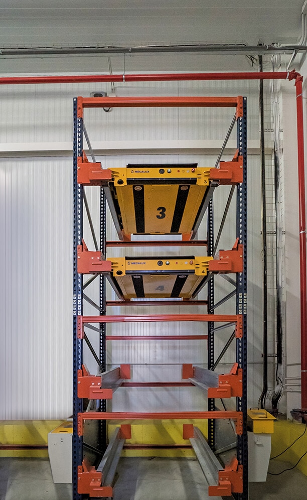 Mecalux has equipped the frozen storage chambers with two different storage systems: drive-in pallet racks and the Pallet Shuttle system that, overall, has a storage capacity of 8,920 pallets.