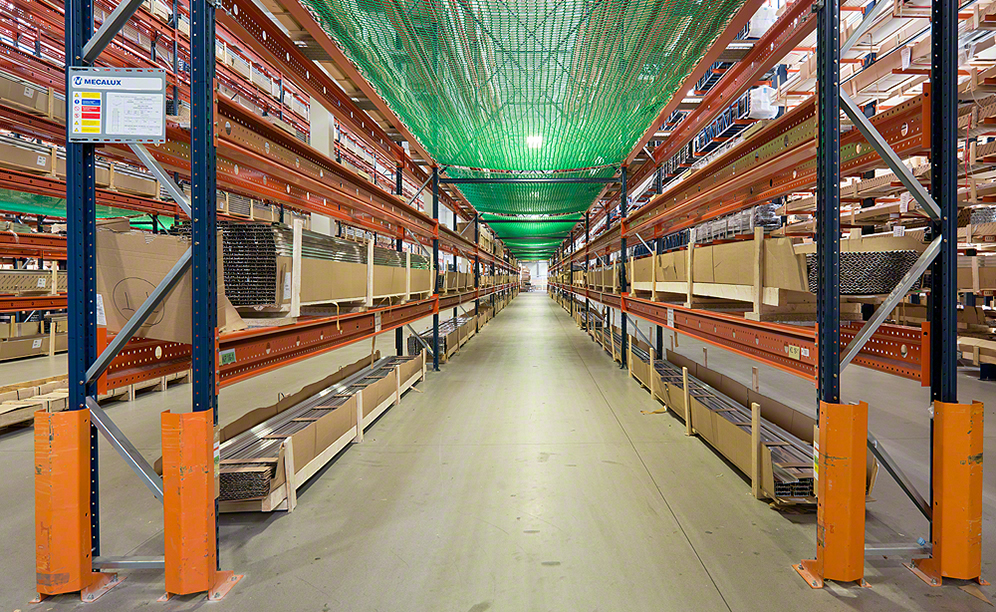 Cantilever racks comprise 8.5 or 9 m high columns, with nine, ten or fourteen levels (depending on the proportions of the goods), and cantilevered arms where unit loads are set.