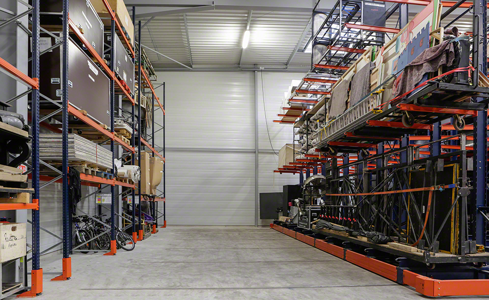 In any concert, show or play, a large quantity of materials (sound, audio, scenography, etc.) is required to make the public feel the energy from the performance. Artys is a French company belonging to the BERTO group that organises the logistics for this type of event. Recently, it opened a new distribution centre where it stores all these products. Mecalux has installed cantilever racks on mobile bases and a three-level mezzanine floor in an effort to maximise the space available.