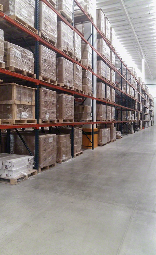 Mecalux has fitted out the new ASSA ABLOY warehouse in Mexico with ten double-deep pallet racks and one 7 m high single-deep rack. These racks are 63 m long, except two which measure 27 m in length. Overall, they provide a storage capacity of 6,480 pallets.