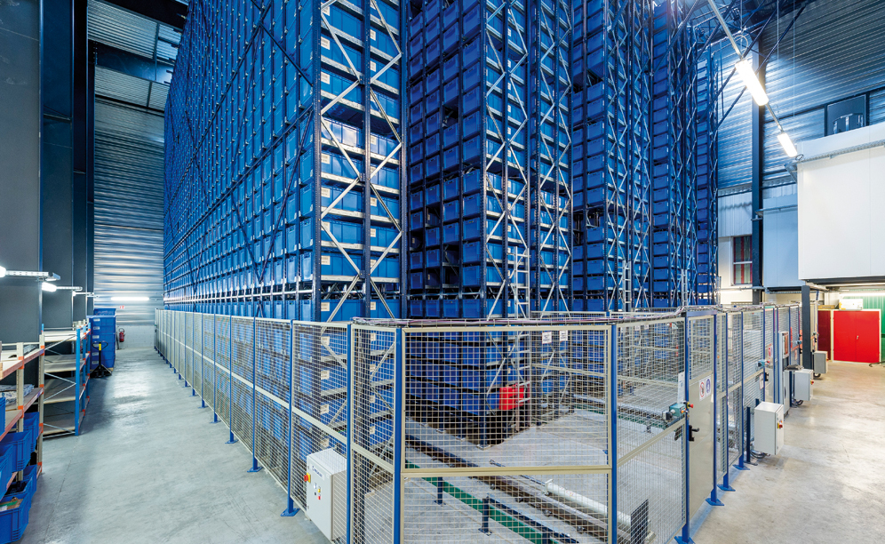 A miniload warehouse with four aisles, and two double-deep racks (one per side), was installed, allowing storage of a total of 15,872 plastic euro-boxes, 600 x 400 x 320 mm in size. The height of the racks is 12.3 m and the total admissible weight per box is 50 kg.