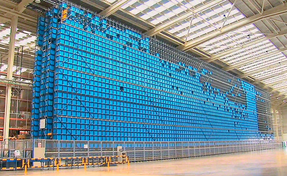 The automated warehouse is set up inside a 35 m high building and takes up a total of 25,000 m2. However, only 8,000 m2 is occupied by storage, setting aside the remaining space for future expansion.
