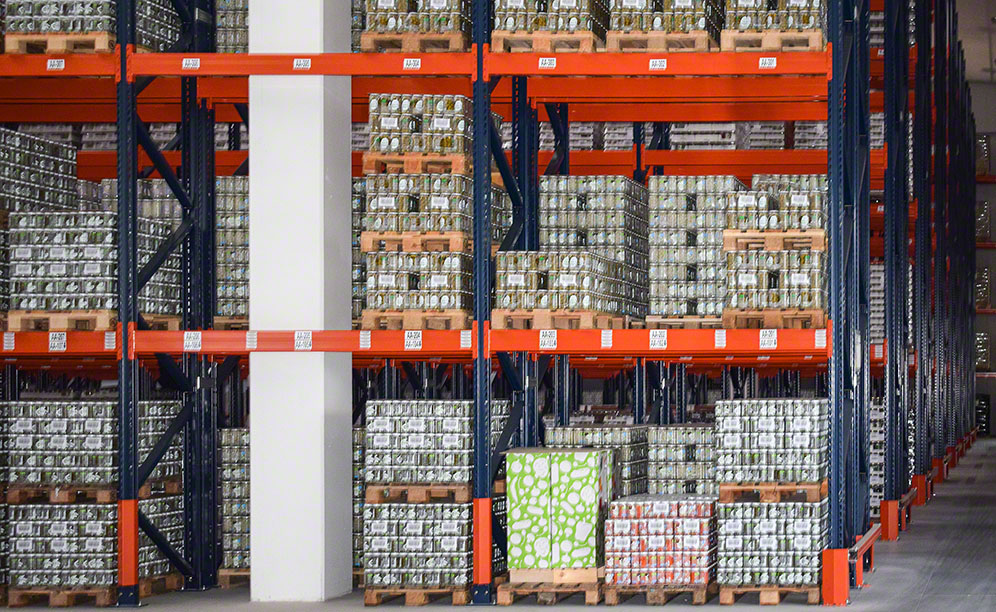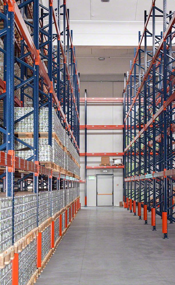 Mecalux has installed two single-deep pallet racking units and eight double-deep ones. With five levels, they stand 9 m tall and can store 3,204 pallets with a maximum unit weight of up to 1,100 kg.