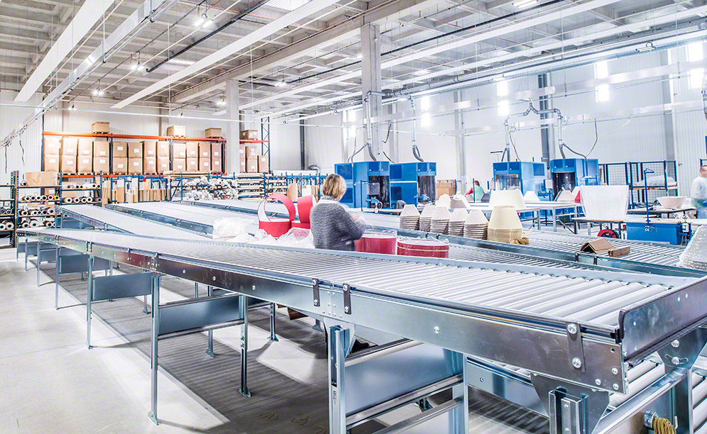 In this zone, operators pre-assemble lamps and lights using all the necessary components. Conveyors bring the required components to the assembly stations.