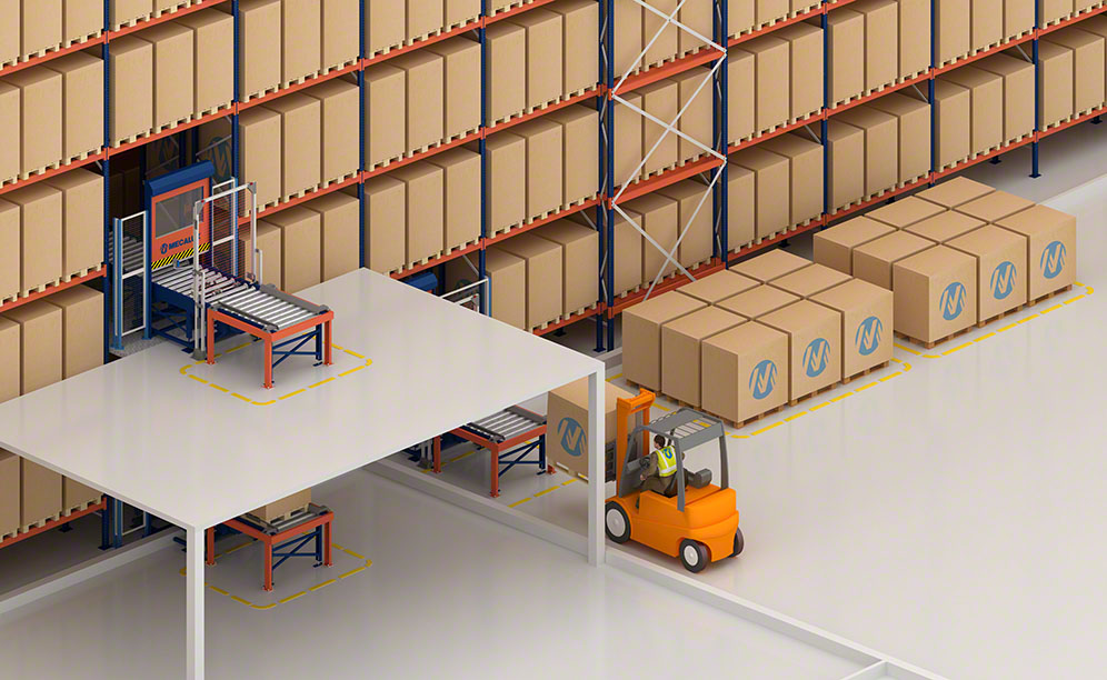 Every day, the installation receives multiple pallets from two possible sources: production or suppliers. In the case of the latter, Easy WMS directs operators using radiofrequency terminals to place the pallets on the corresponding inbound conveyor.