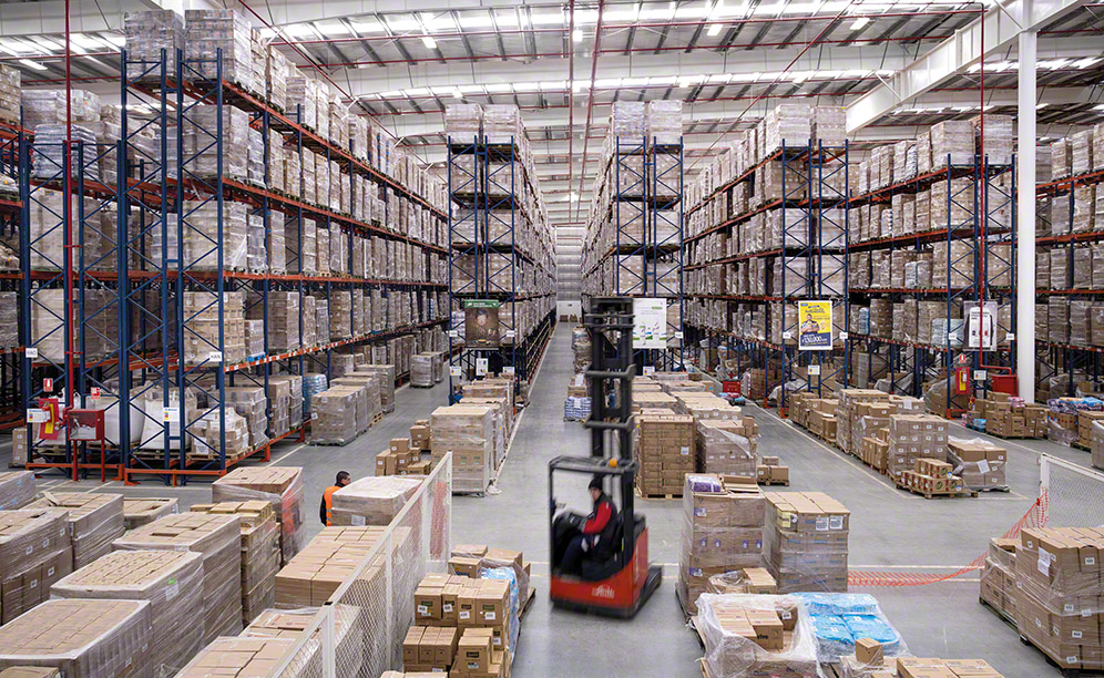 Mecalux has equipped the new Unilever distribution centre in Montevideo (Uruguay) with both single and double-deep pallet racks, providing a storage capacity of more than 15,000 pallets. In addition, 48 live picking bays were set up in one part of the racks to accelerate order picking.
