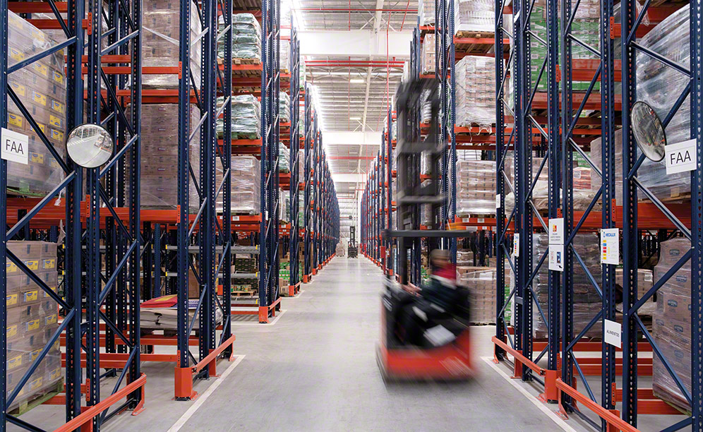 The storage area comprises single and double-deep racks, as well as levels with live picking storage. Between racks and the 27 loading docks, there is a preloads space where the reception and dispatch of goods are managed.
