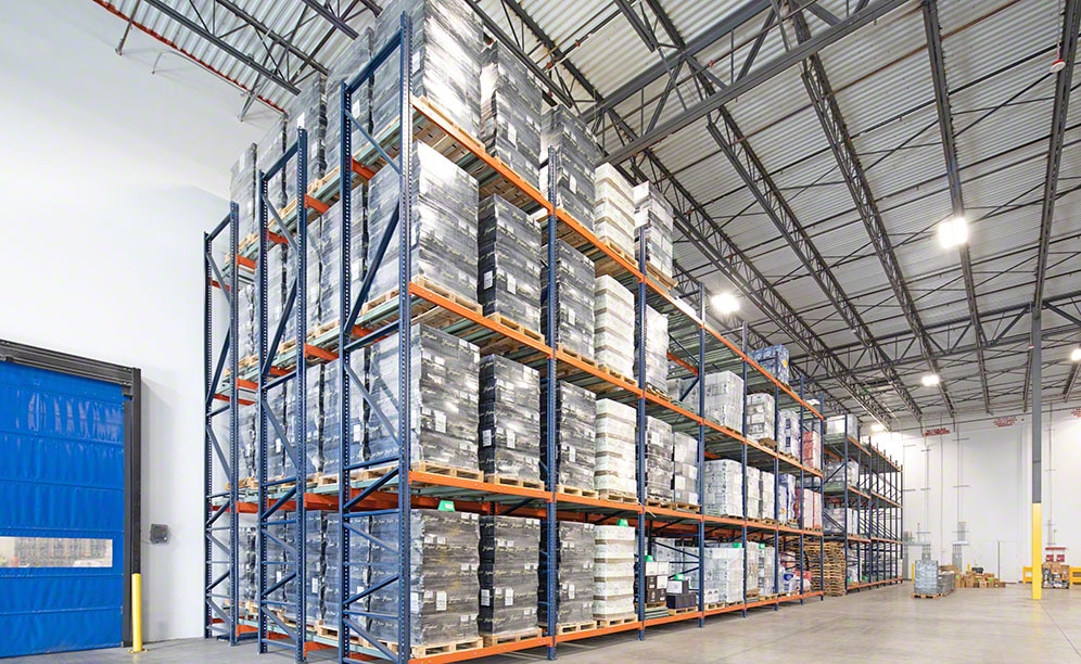 Both of the storage systems provided by Interlake Mecalux and Andersen help this facility to prepare 40 orders per day with 20 lines per order. Each day, the installation receives and delivers 300 pallets, mainly from and to the United States and South America.