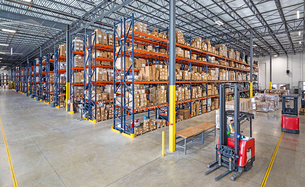 Interlake Mecalux and partner Andersen Material Handling have equipped a 13,935 m2 warehouse in Miami, Florida, for Dufry, a travel retailer. The project includes adjustable pallet racks and the high-density push-back racking system. Overall, the systems have a 9,200-pallet storage capacity. These two solutions help Dufry manage 30,000 different SKUs and 300 incoming pallets per day.