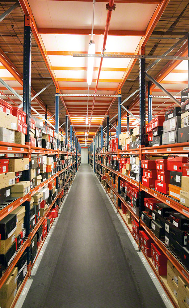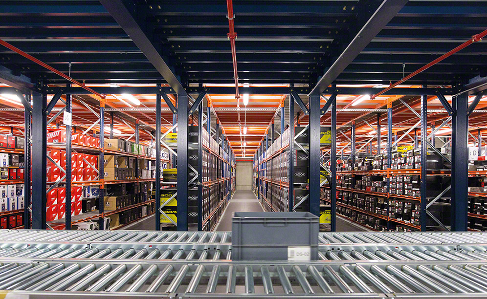 Mecalux has installed racks that are 9 m high and subdivided into four floors: the ground-level, two levels with walkways and a column-free top level.