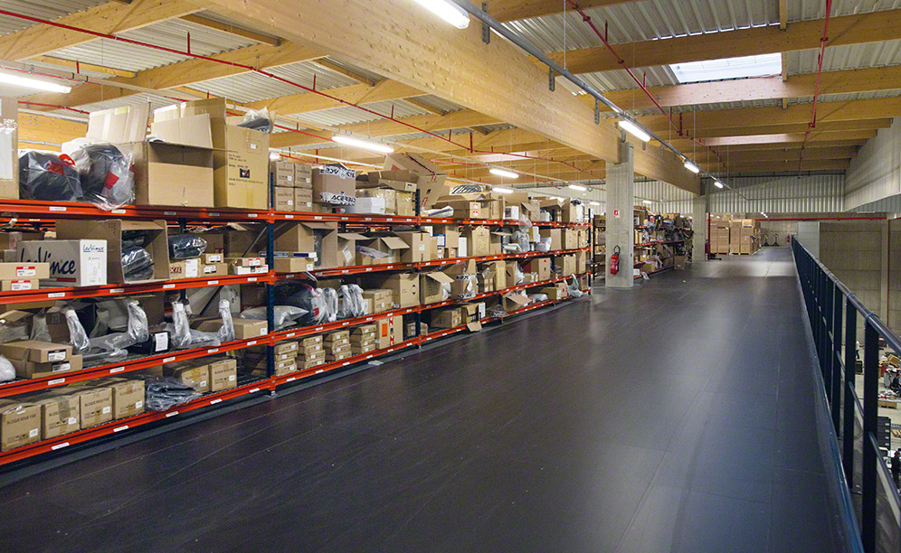 The result is a 2,640 m2 sized installation, consisting of picking blocks with walkways that form four levels, quadrupling the useful area of the warehouse.