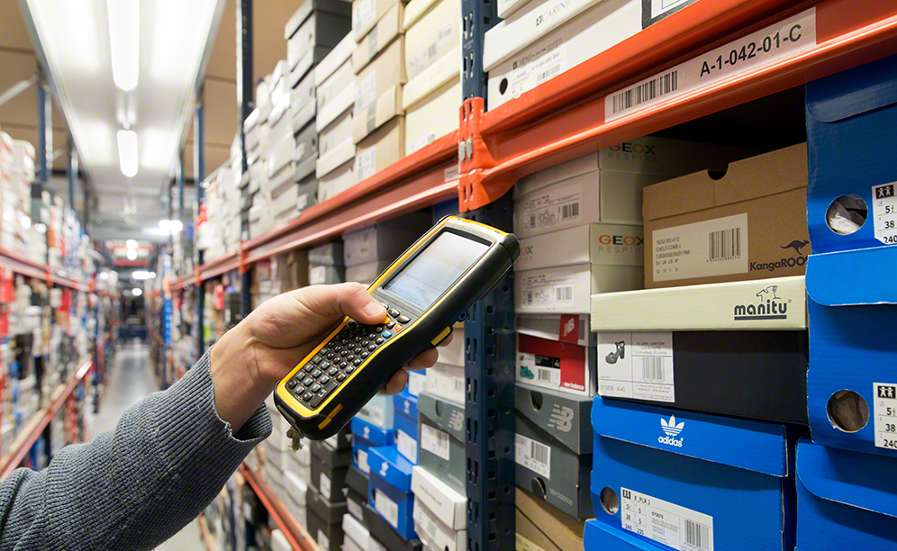 Mecalux has installed 8.5 m high shelves which have built-in raised aisleways, creating a total of three storage levels. With this solution, the company has tripled the storage area to stock hundreds of thousands of boxes with shoes.