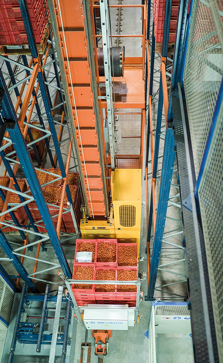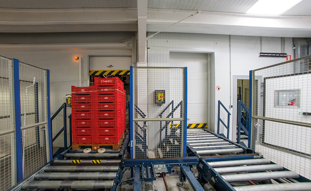 Once this phase is completed, three lifts move the pallets to the top floor. Flow capacity is sufficient to absorb the large number of deliveries that farmers deposit in a relatively short period of time.