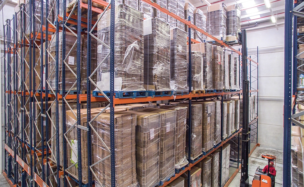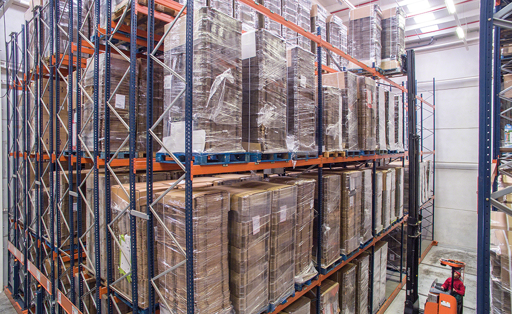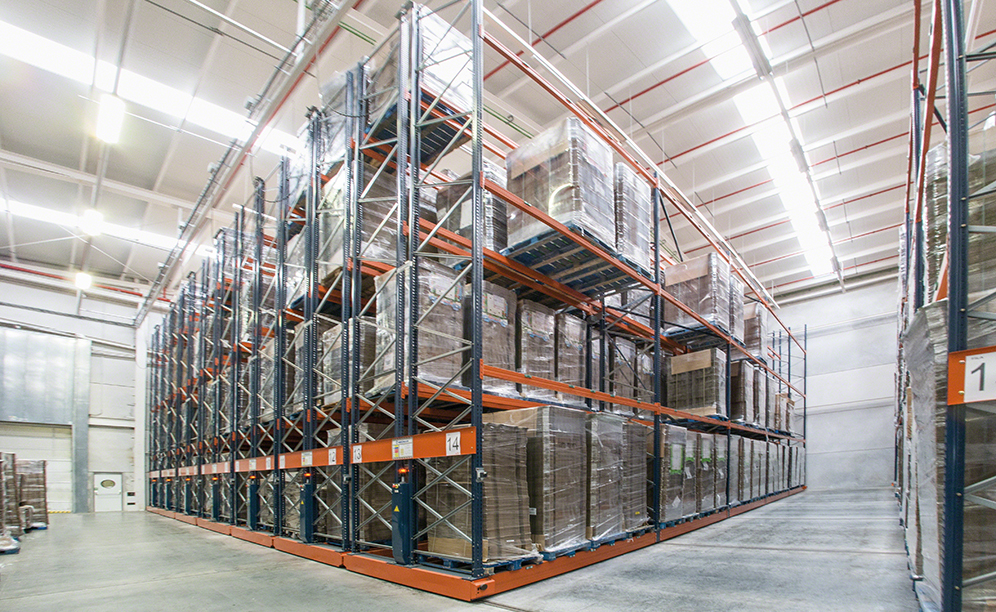 It involves a high-density storage system that maximises available surface, by multiplying the number of pallets that can be housed in the warehouse. The racks are placed on mobile bases, which move sideways, eliminating and opening working aisles when necessary.