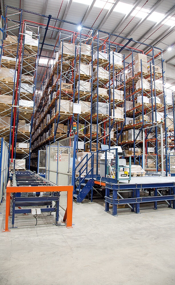 An automated warehouse 12.5 m high and 76 m long was installed, with two double depth aisles with capacity to store up to 3,674 pallets.