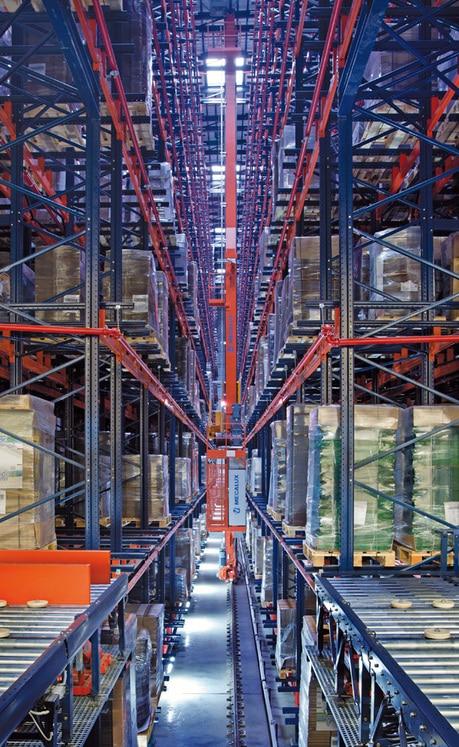 An automated clad-rack warehouse with a capacity to store more than 6,300 pallets in just two working aisles