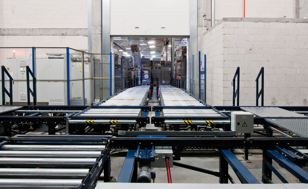 The warehouse stands out because of its functionality. The input and output of products is done automatically, via a conveyor circuit with rollers and chains that controls the pallets at all time from their reception. This system allows load units to move with great agility, without the need for human intervention and avoiding all logistical errors.