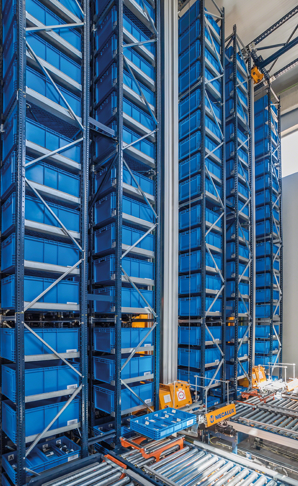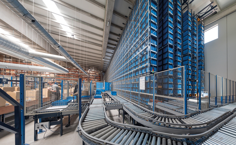 Mecalux has provided all storage systems: an automated miniload warehouse, a complete circuit of conveyors with P&D stations, box formers, box sealers, scales and classification chutes