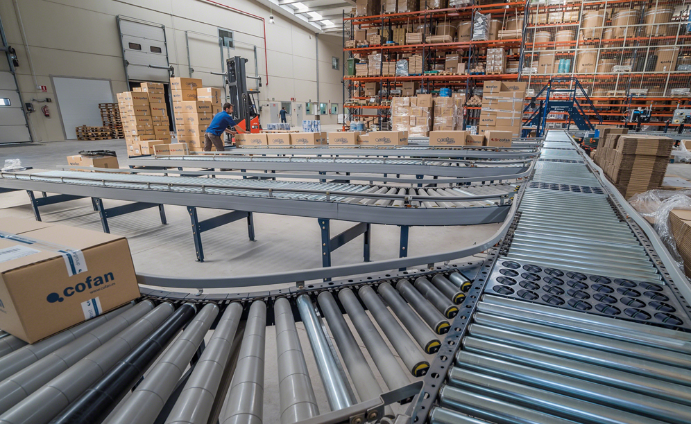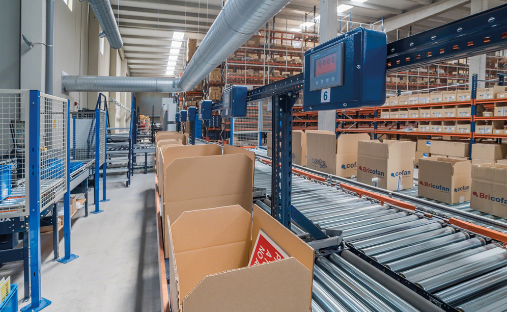 Once the finished orders pass through the consolidation area, they are sent towards the five classification chutes located in front of the loading docks. There they are grouped by routes and transport agencies before being dispatched.