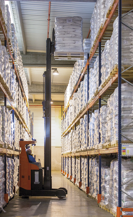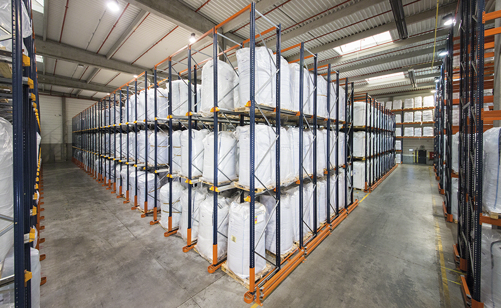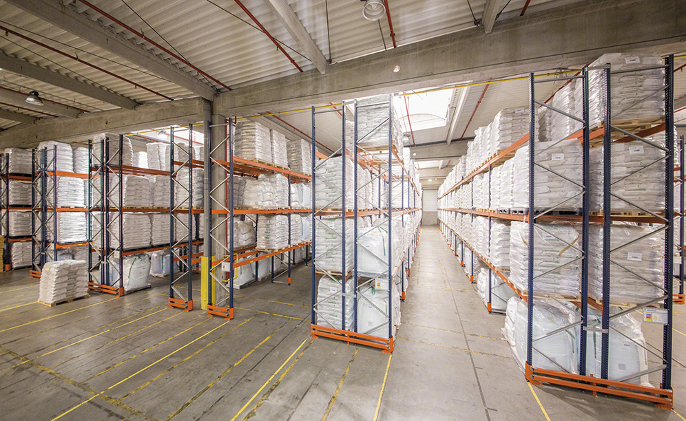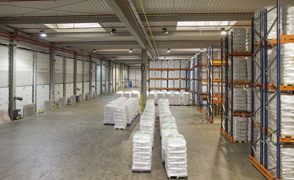 The warehouse has two distinct areas composed of drive-in and conventional pallet racking systems. The goods are located depending on their demand and size.