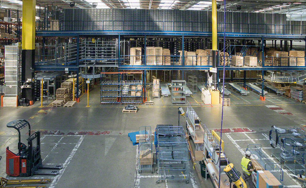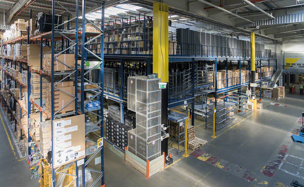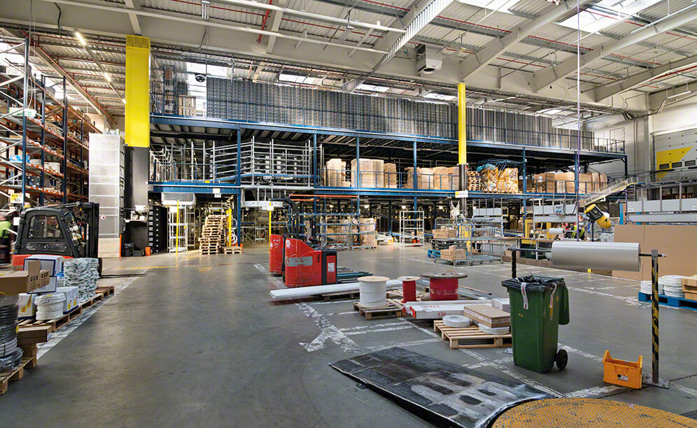 Sector 7 features a large three-level high mezzanine (including the ground floor) that has been integrated just beyond the picking block, and has tripled the useful surface of the warehouse. This way, the installation's height is fully used to maximise the space available and to gain greater storage capacity.