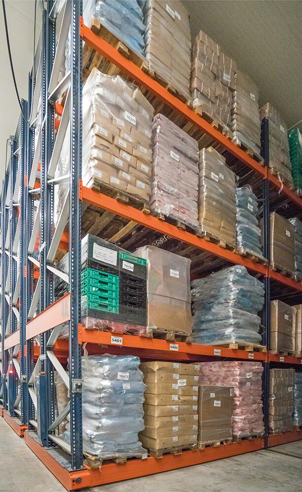 Mecalux equipped the new chamber with five double-depth racks on Movirack mobile bases and two stationary ones that are 8.8 m high