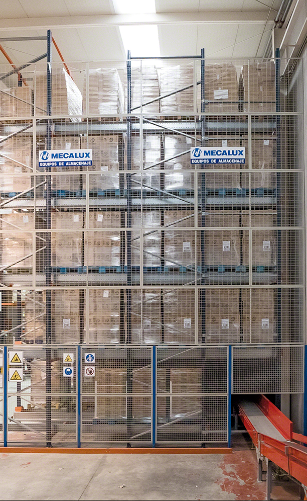 Mecalux has supplied a high-density block of racks served by the Pallet Shuttle, consisting of five levels that are 8.5 m high