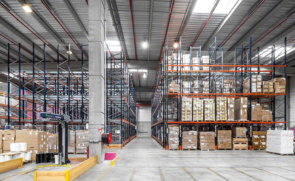 - Space optimisation: the racks make full use of the available space to achieve a storage capacity of more than 1,200 pallets.