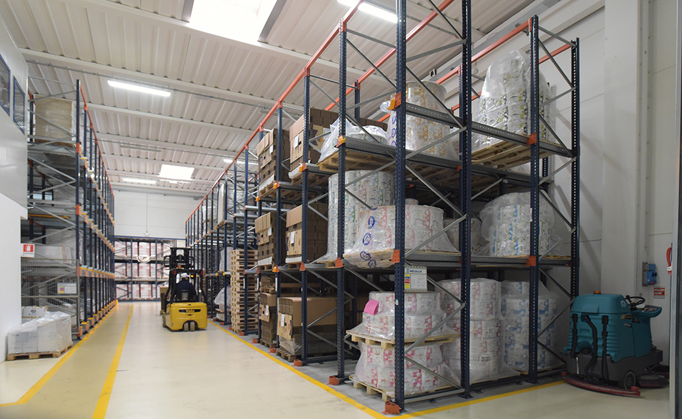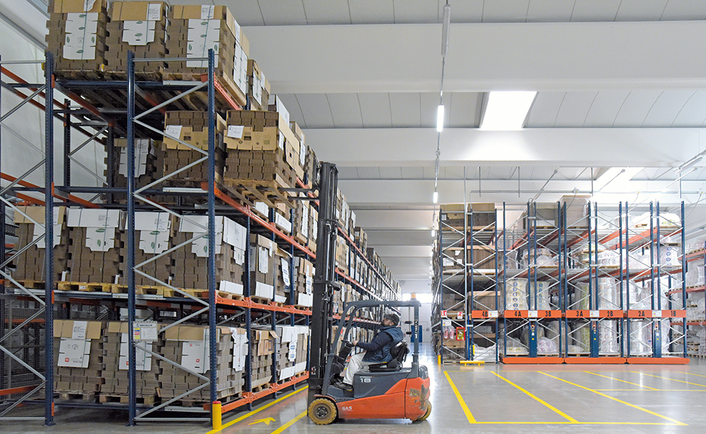 In order to supply products indispensable to Abafoods’ production processes, materials used daily in packaging and bottling tasks are temporarily deposited in the drive-in pallet racking.