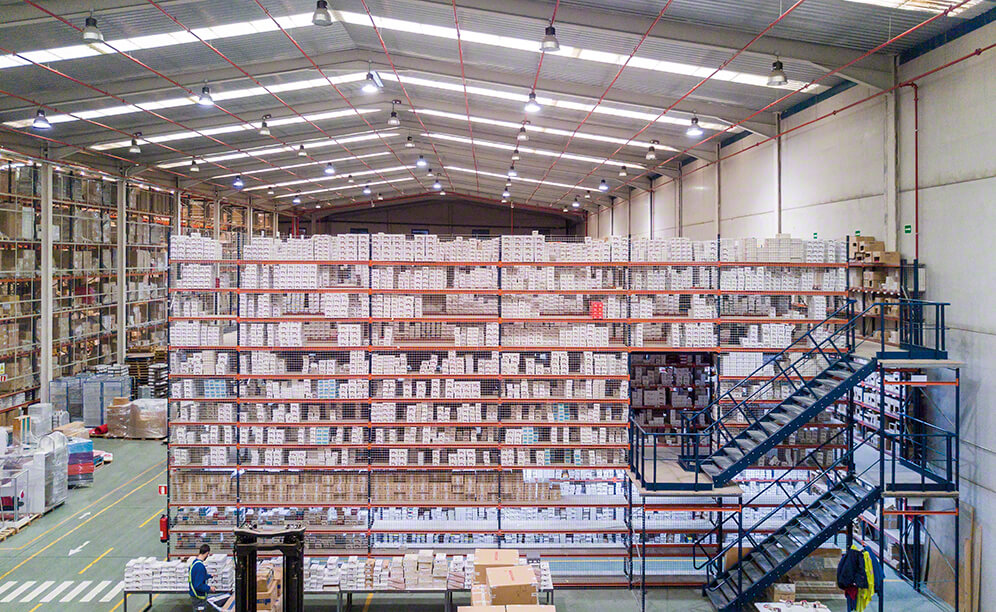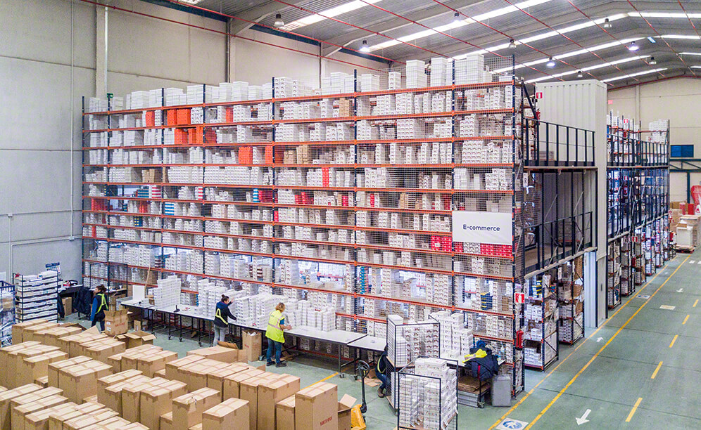 Mecalux has equipped the Eralogistics warehouse, a logistics services operator, in the town of Borox (just 44 km from Madrid) with pallet racking and racking with walkways that comprise three floors where online orders are prepared. The company stores, manages and provides transport service for its customers throughout Spain.