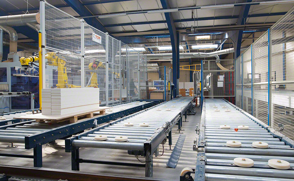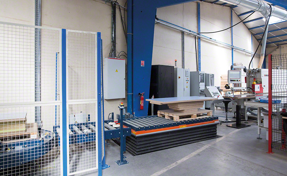 Mecalux pallet conveyors link the distant points of the Euréquip production centre. These take goods to the different processing areas where the wood panels, subsequently used to build the pieces of furniture, are cut and shaped.