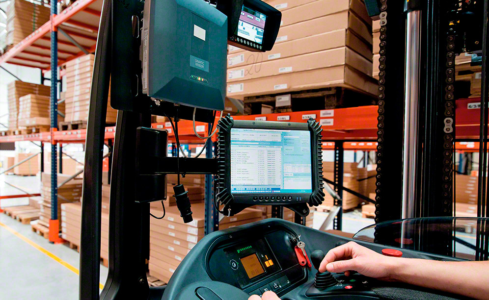 Operators follow the instructions of a warehouse management software (WMS) via a radiofrequency device, which tells them which locations to visit.