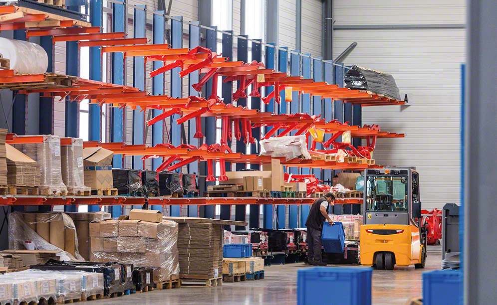 The new Grégoire-Besson distribution centre, a French farm technology equipment company, consists of an automated warehouse for boxes, pallet racking and cantilever racking by Mecalux. The combination of these three storage systems lets merchandise be organised according to their characteristics and demand, streamlining order picking tremendously.