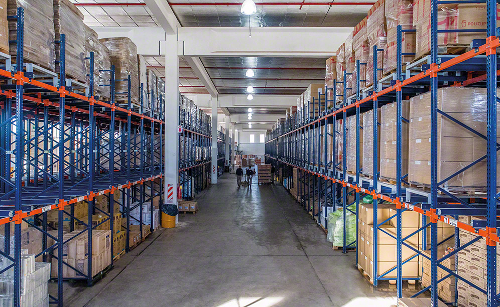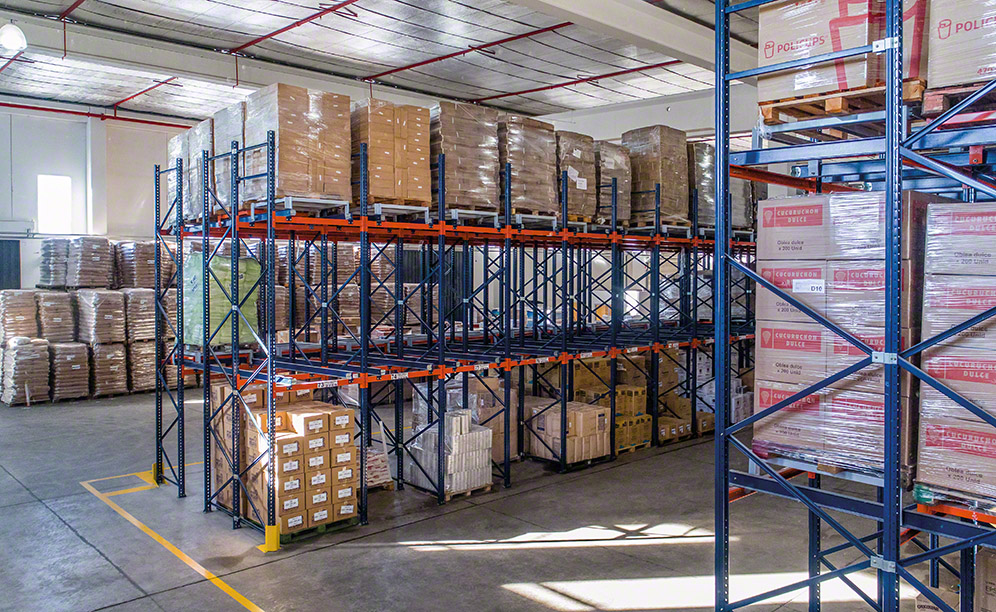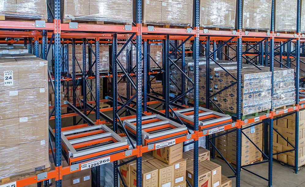Mecalux has installed two 5.5 m high blocks of push-back pallet racking, which each have three-tiered storage. In the words of the company’s general manager, “This solution fully optimises the warehouse’s surface, letting us slot our products without needing to have many aisles.”
