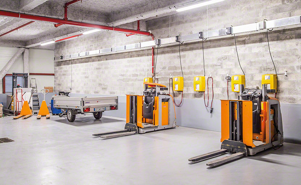 The warehouse was designed to fulfil the needs of Côté Table. For this reason, beside the dispatch area, there is a zone set aside for forklift battery charging.