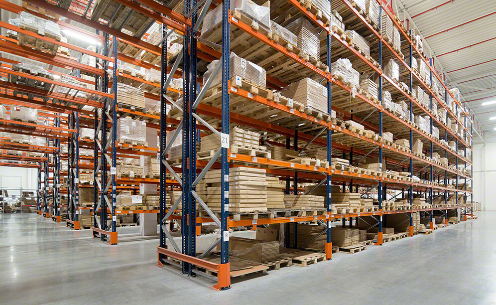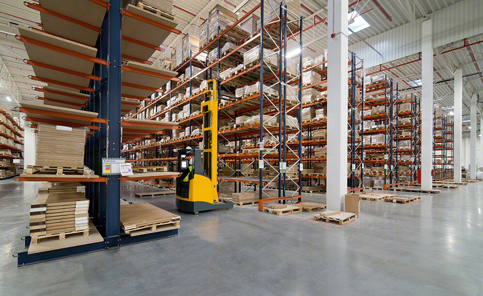 These shelves primarily house the components that comprise the shelves and cabinets for any room in the house. A further characteristic of these racks is the direct access to the products, which simplifies the storage and order preparation tasks. Picking is done directly off the pallets located on the lower levels. In the upper ones, reserve products are stored, making merchandise available at any moment to avoid service disruptions.