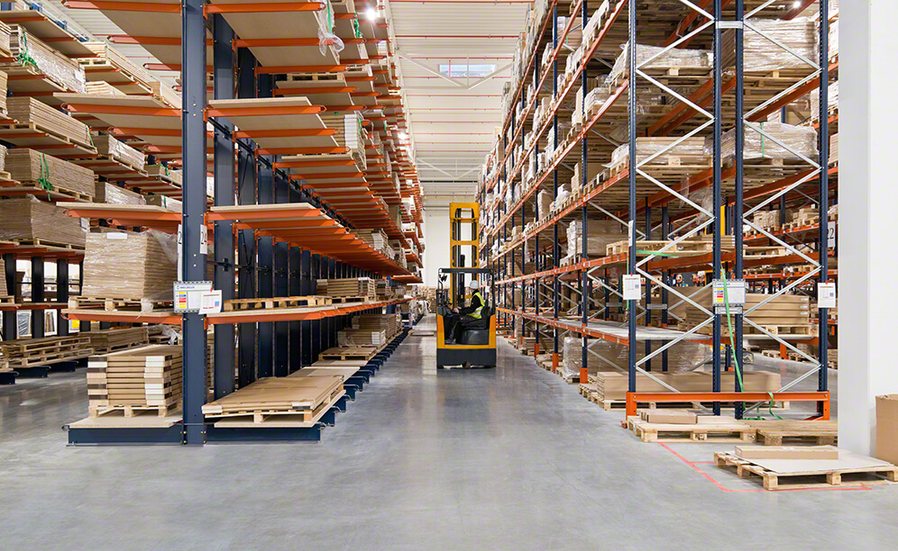 MYCS has equipped its new 12,748 m² logistics centre in Szczecin (Poland) with pallet racks and cantilever racks from Mecalux. The two storage solutions stand out for their flexibility, since they adjust to the products’ dimensions and volumes (furniture components such as tables, shelves or cabinets). In addition, by providing direct access to merchandise, they streamline load management and help control stock.