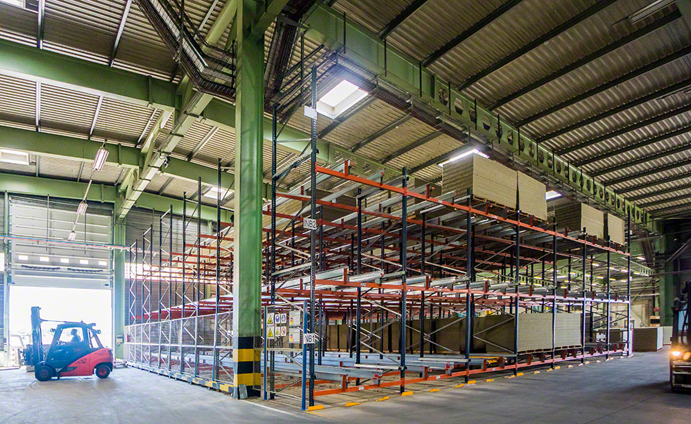 - Full use of space: the compact pallet racks optimise Rockwool’s available space, providing a storage capacity of 336 pallets that are 1,000 x 2,400 mm in size.