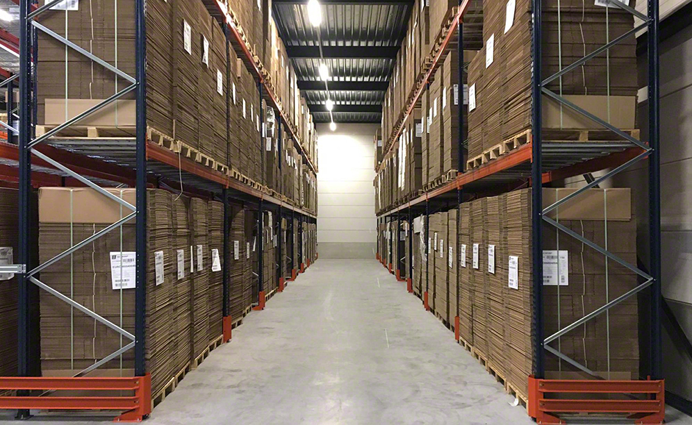 Racks are 5.5 m high, with three shelf levels, and are 30 m long. Globally, they provide a 2,004-pallet storage capacity which, in the words of the company's CEO, “has meant an increase of 40% per square metre compared to our previous warehouse.”