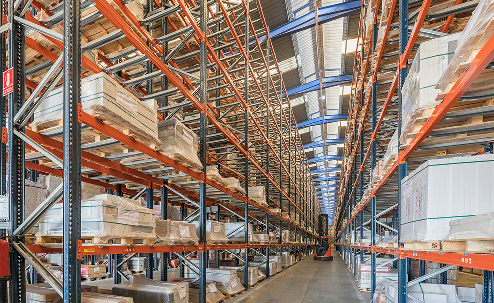 Grupo Pamesa, one of the biggest Spanish ceramic flooring makers, has opened a new warehouse in its Logistics Centre 5 in Onda (Castellón) where it manages more than 80,000 pallets, 12,944 in Mecalux racking. This storage system means there is direct access to the products, which streamlines the preparation of between 400 and 500 picking lines each day in this centre.
