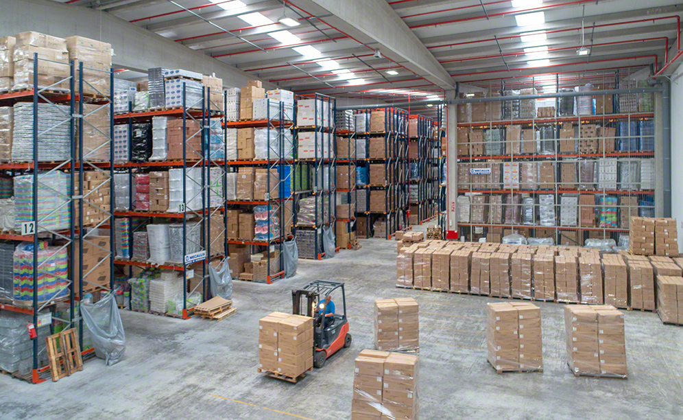 All the areas of the warehouse have blocks of pallet racks. This is due to the fact that this system is highly versatile, since the racks can include components that adjust the sizes of the locations to the pallets.