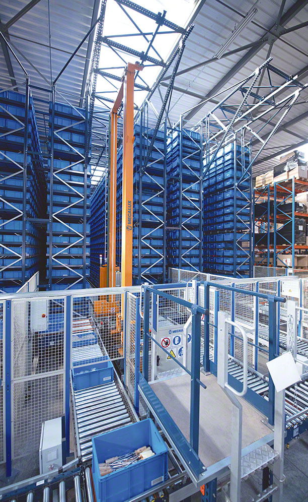 The pallet racks stand 8 m high and provide storage capacity for 6,030 pallets. Designed to accommodate loads of different sizes, weights and shapes, this racking is used for bulky products such as tool trolleys. The automated warehouse for boxes, meanwhile, can store 80% of SAM Outillage’s SKUs.