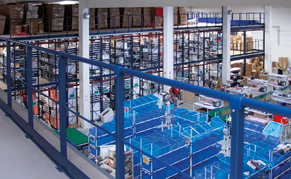 Mecalux has equipped the warehouse with longspan shelving, a storage system that streamlines order preparation and is noted for its versatility in adapting to particular product characteristics. This solution spanning three floors — two with raised walkways and one in the form of a mezzanine — has enabled Stand-Privé.com to triple its useful storage area.