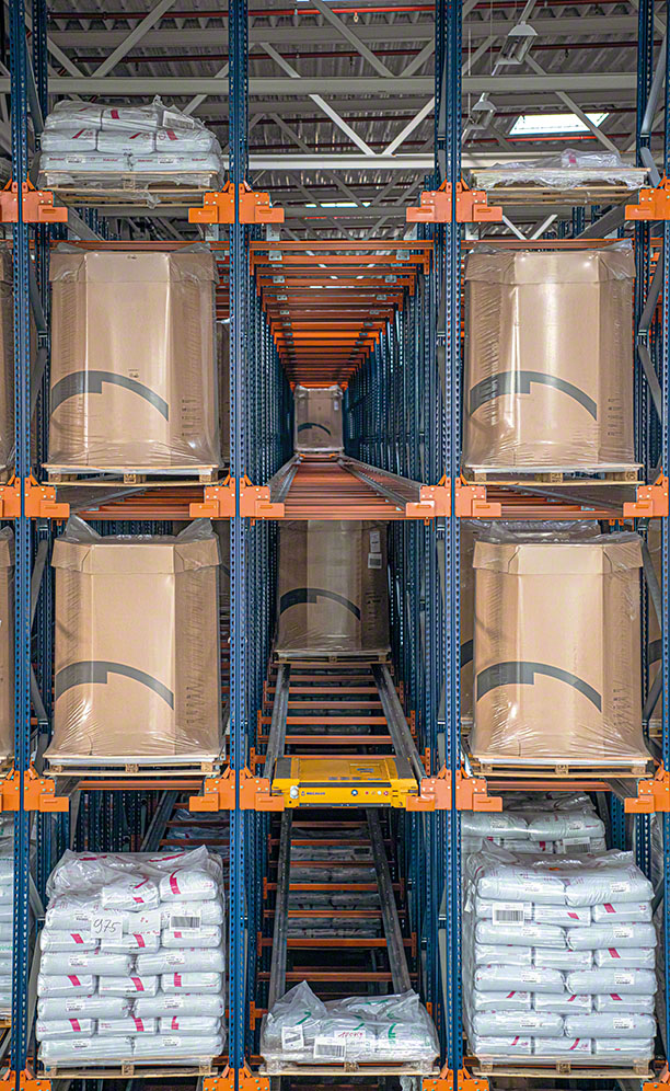 After analysing the warehouse’s special features, Mecalux equipped it with two racking units with the Pallet Shuttle system to optimise the storage area. These stand 9.5 m high, are divided into five levels and have storage capacity for 10,695 pallets with a maximum unit weight of 1,000 kg.