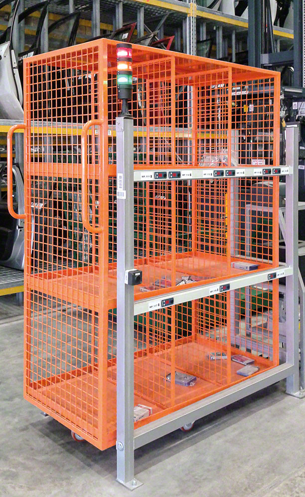 This installation has three stations where operators prepare orders in waves, that is, operators sort the products by order as soon as they extract them from inside the boxes. Each pick station has two carts (with nine locations each, 18 in total) equipped with put-to-light devices that help operators distribute the goods into various orders simultaneously. Once the product is received, the display lights up and shows the number of items the order requires, boosting efficiency and reducing possible errors.