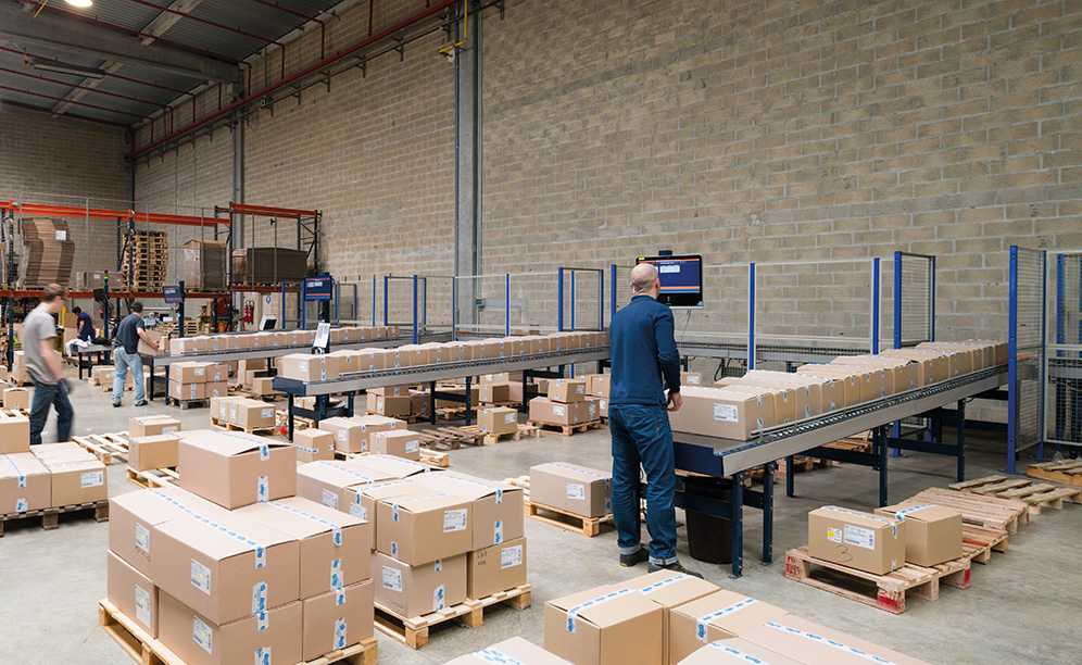 Following an in-depth needs analysis, Mecalux chose to provide a conveyor circuit, which runs through the centre of the warehouse at a speed of 25 m/min, joining all areas. Along the route, there are five picking stations.